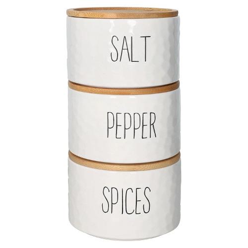 Set barattoli 3 pz Sale, Pepe e Spezie impilabili (600ml) NEW AGE Bianco 51945