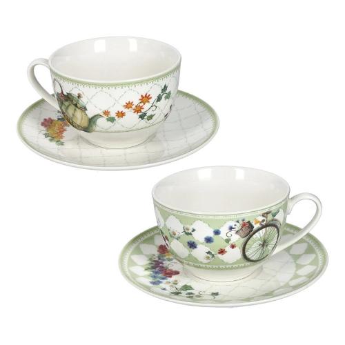 Set tazze te bone china con piatto 2 pz (200ml) WONDERLAND Bianco e verde decorato 51832