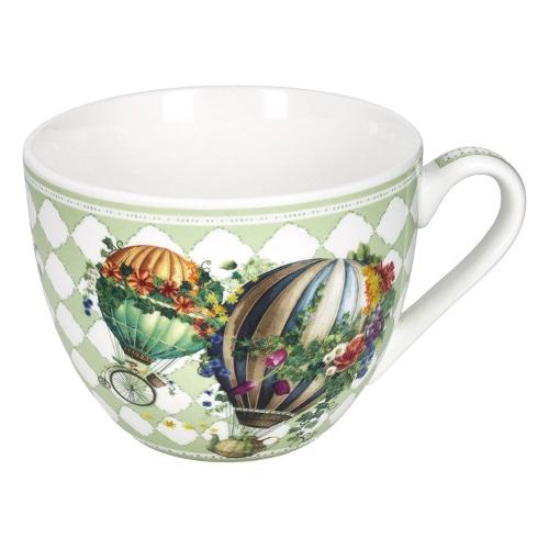 Tazza colazione in New Bone China, con decoro a mongolfiere romantiche in stile Wonderland. La forma ampia e capiente è pensata per latte, caffelatte e bevande calde della colazione.Il motivo decorativo, delicato e fiabesco, valorizza la superficie della tazza con eleganza, mentre la New Bone China garantisce leggerezza, resistenza e una finitura luminosa, ideale per l’uso quotidiano e per un coordinato colazione armonioso.