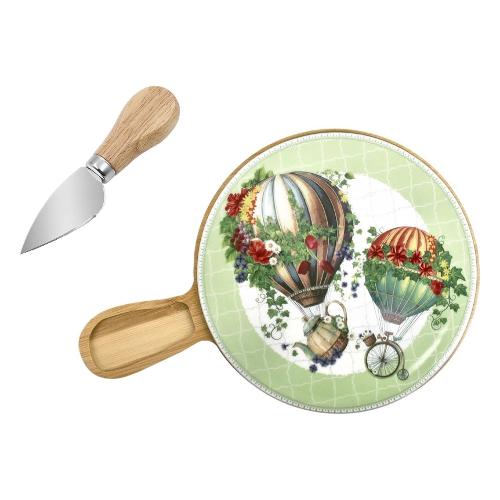 Tagliere formaggi (20x29,5cm) con coltello inox WONDERLAND Bianco e verde decorato 51851
