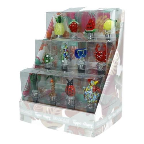 composti di elegante vetro, si adattano ad ogni bottiglia proteggendone la freschezza. Tanti i soggetti disponibili tra cactus, frutti tropicali e fondali marini. Perfetti da utilizzare,