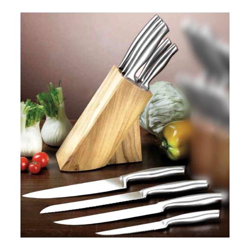 Include 5 coltelli acciaio inox: spelucchino, pane, cucina, utility, multiuso