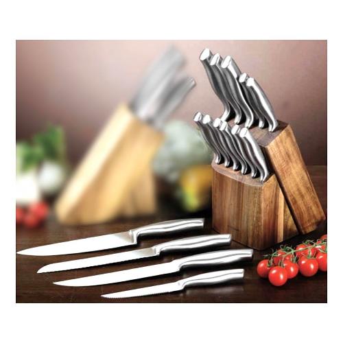 Include 11 coltelli acciaio inox: spelucchino, pane, cucina, utility, multiuso e 6 coltelli bistecca