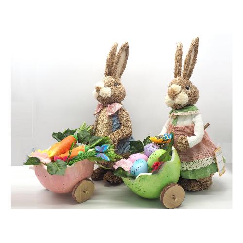 Decoro Coniglio impagliato carretto 39.5x15 cm Assortito 16618