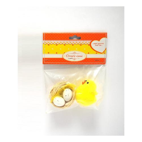 Decoro Pulcino peloso con nido +2 ovetti 12351