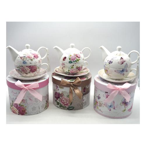 Teiera Ceramica con piatto e tazza incorporata FIORI Assortito 73043