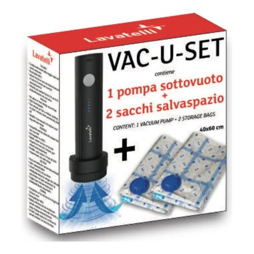 Pompa sottovuoto USB ricaricabile con 2 sacchetti indumenti 40x60 cm VAC U SET 513