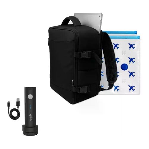 Zaino viaggio (30x20x40cm) Vac U bag con pompa sottovuoto e 2 sacchi Nero 515