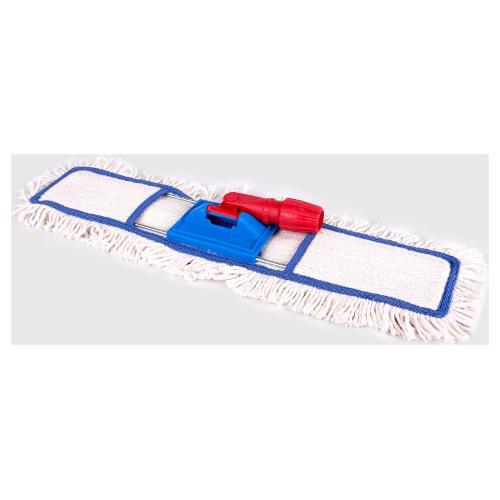Scopa lineare in cotone da 60 cn con frange. Cattura e trattiene la polvere. La frangia in cotone è disponibile come ricambio. Attacco del manico con snodo per raggiungere i punti difficili.