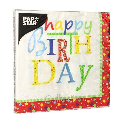 Pap Star Set tovaglioli monouso 3 veli Classic Happy Birthday 20 pz (33x33cm) Multicolor 82597