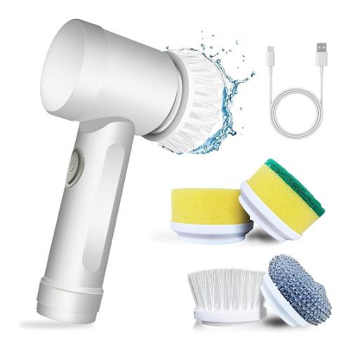 Spazzola rotante elettrica 3W 1900 g/min senza fili con 5 testine intercambiabili per la pulizia di piatti, scarpe, bagno, fughe, piastrelle, mobili da giardino e molto altro. Batteria 3,7V 1,2Ah ricaricabile con cavetto usb, tempo di ricarica 2h circa per un'autonomia 80-100 min