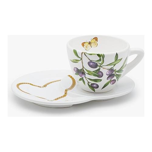 Ceramiche Viva Tazza ceramica croissant con piatto (24x18x10cm) FRANTOIO Bianco e Verde T0703106
