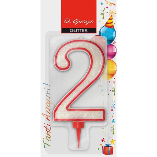 Candela compleanno Nr. 2 (11cm) Bianco e Rosso 58170 62
