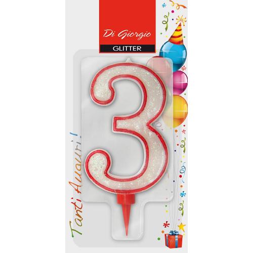 Candela compleanno Nr. 3 (11cm) Bianco e Rosso 58170 63
