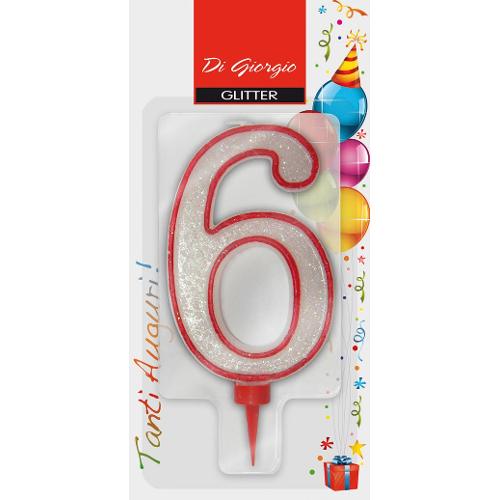 Candela compleanno Nr. 6 (11cm) Bianco e Rosso 58170 66