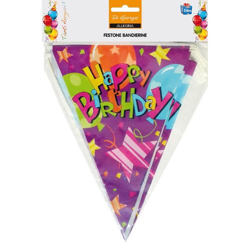 Rendi ancora più divertente la tua festa decorandola con i nostri festoni di complenno. Ogni confezione contiene un festone con fantasia a tema compleanno: le sue allegre bandierine renderanno la sala della tua festa davvero speciale