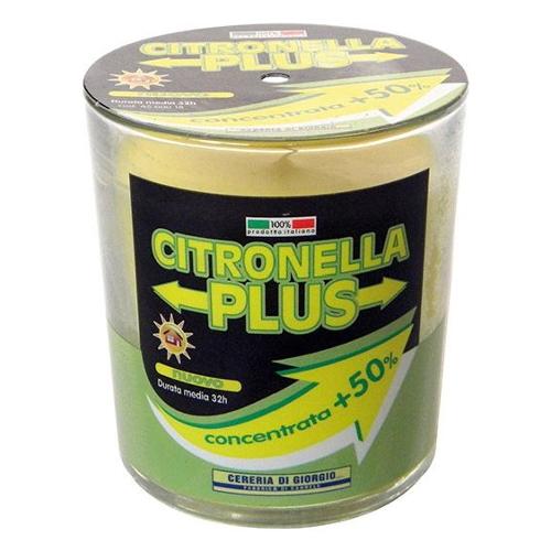 Proteggiti con le naturali proprietà dei bicchieri riempiti di cera citronella plus. La citronella, infatti, è conosciuta per la sua qualità di tenere lontani gli insetti. Grazie all'utilizzo di un concentrato maggiore del 50%, la linea citronella plus è ancora più efficace. I prodotti della linea plus, sono fatti con sostanze naturali, quindi, non tossiche. Una maggiore quantità di materia prima e un concentrato superiore, permette a questi prodotti di essere usati per lungo tempo mantenendo la loro efficacia fino alla fine. Durata tealight: 32 ore