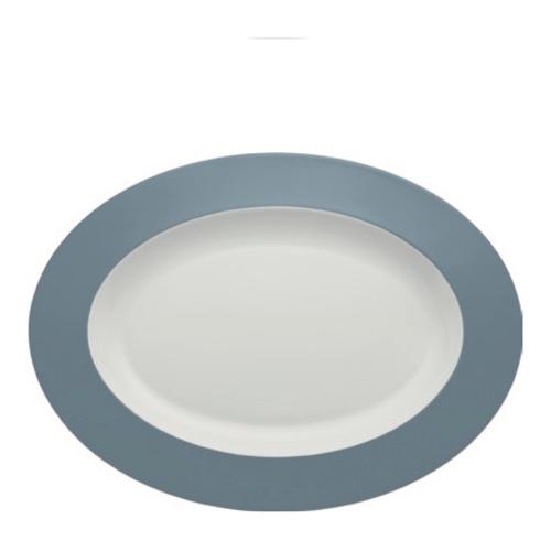 Piatto portata Bone China (39x29cm) ovale FRESHNESS Bianco e Avio A0437C60