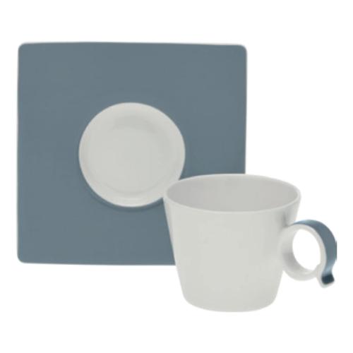 Tazzina caffè bone china con piatto (6,7cm) FRESHNESS BANDY Bianco e Avio