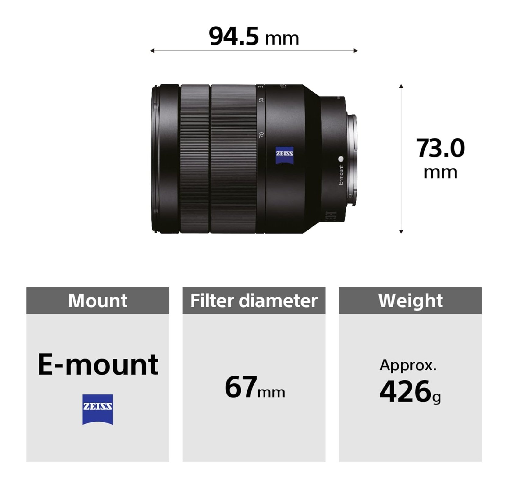Standard Zoom ZEISS Fe 24 70mm F4 Za Oss Vario Tessar T Black SEL2470Z AE