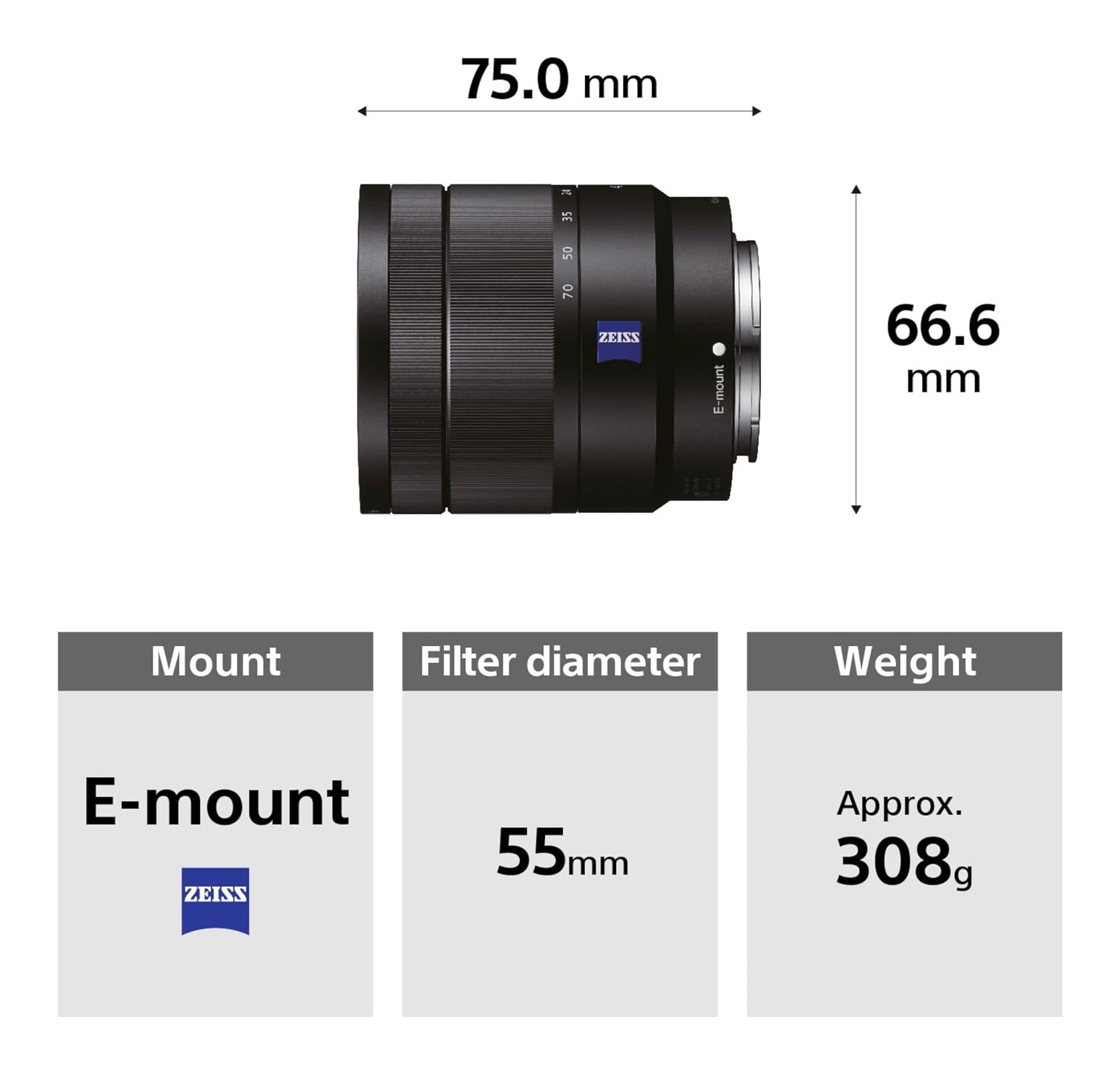 Questo leggero zoom medio coniuga le rinomate prestazioni dell'ottica ZEISS® con un'apertura massima costante di F4 per garantire prestazioni eccezionali su tutta la gamma di zoom. Il meccanismo di messa a fuoco lineare fluido e silenzioso e l'AF reattivo rendono quest'ottica la scelta ideale in numerose condizioni di scatto. Integra la stabilizzazione dell'immagine con SteadyShot ottico.