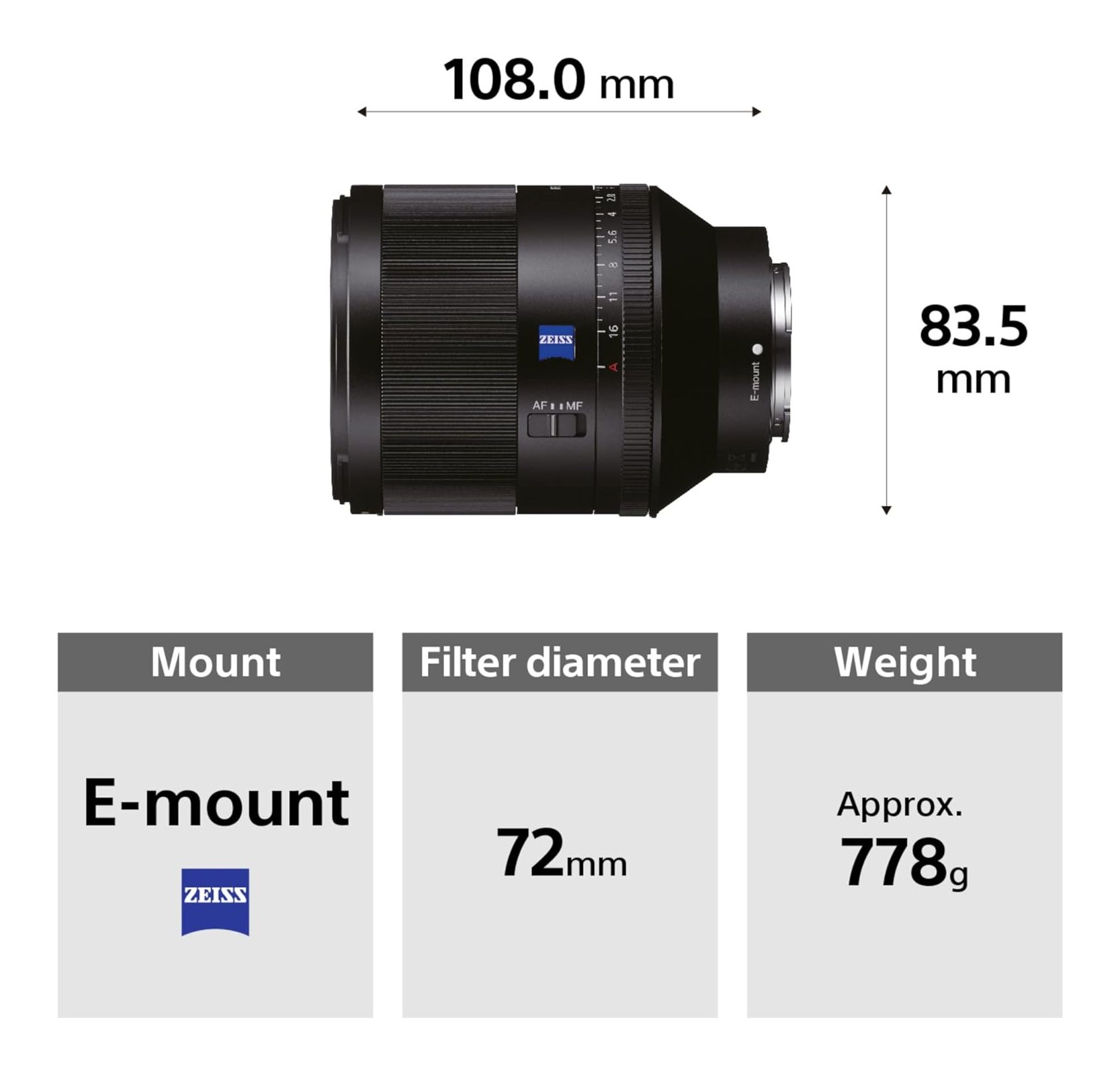 Focale fissa ZEISS Fe 50mm F1.4 Za Planar T Black SEL50F14Z SYX