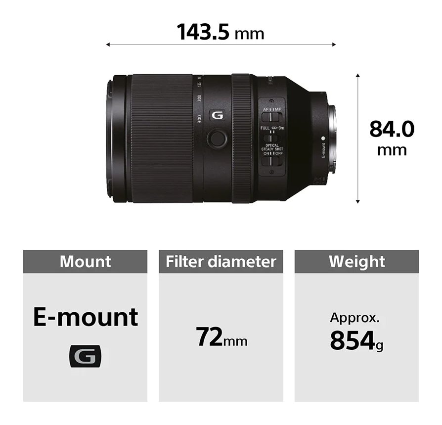 Teleobiettivo G SERIES Fe 70 300mm F4.5 5.6 G Oss Black SEL70300G SYX
