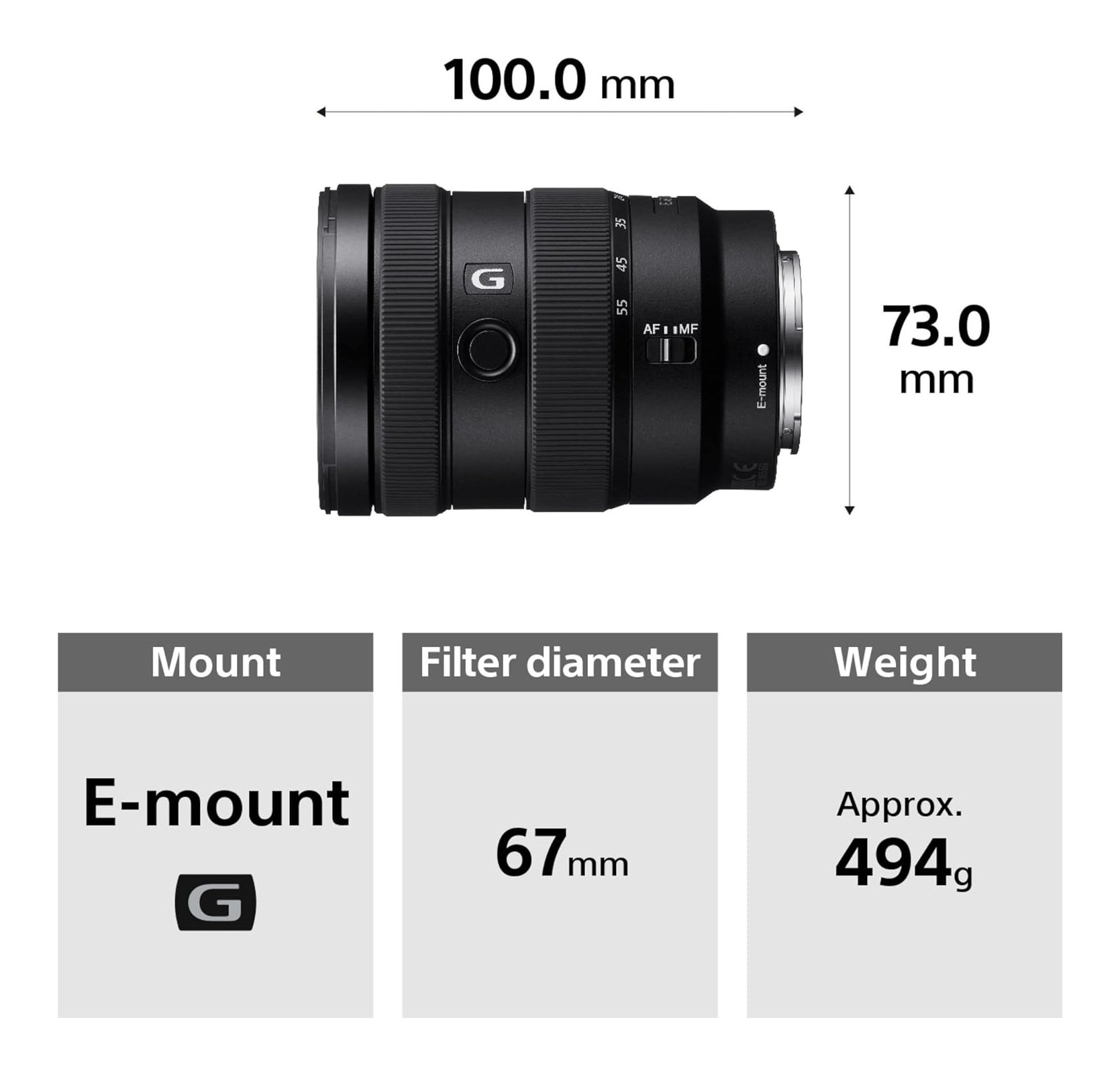 Standard Zoom G SERIES E 16 55mm F2.8 G Black SEL1655G SYX