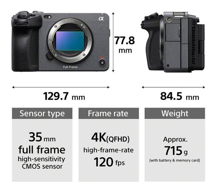 Telecamera Cinema Line Full Frame ultra compatta con tecnologie Fast Hybrid e Real-Time Eye AF, 4K (QFHD) High Frame Rate da 120 fps, range dinamico di più di 15 stop e scienza del colore S-Cinetone.