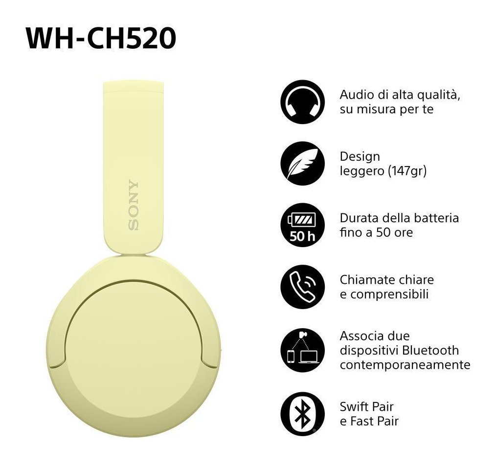 Ascolta suoni di alta qualità tutto il giorno. Grazie a durata della batteria fino a 50 ore, connettività stabile e migliori prestazioni in termini di qualità delle chiamate, le cuffie WH-CH520 soddisfano ogni esigenza delle tue giornate.