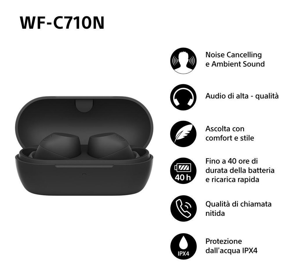 Cuffie True Wireless con Noise Cancelling e 4 microfoni, perfette per l'uso quotidiano, vestibilità comoda, suono di alta qualità con DSEE, EQ personalizzabile tramite app, 360 Reality Audio, 30ore di autonomia, ricarica rapida, connessione Multipoint, resistenza all'acqua IPX4 e funzionalità smart.