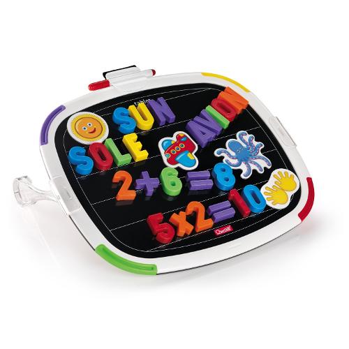 Lavagna con due facce magnetiche scrivibili e cancellabili. La lavagna tablet lettere + numeri permette, quindi, di attaccare sia lettere che numeri calamitati su entrambi i lati, bianco e nero, e di scrivere o disegnare con i pennarelli a secco cancellabili. Ai componenti in plastica si affiancano le tesserine magnetiche in robusto cartone che, grazie ai disegni accuratamente selezionati ed illustrati, stimolano correttamente la composizione delle prime facili parole oppure operazioni aritmetiche