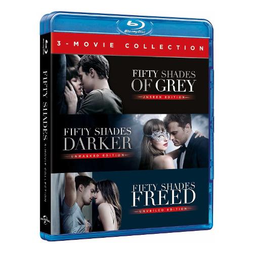 La Trilogia include versioni estese cinematografiche. CINQUANTA SFUMATURE DI GRIGIO. Dakota Johnson e Jamie Dornan sono Anastasia Steele e Christian Grey, i protagonisti. Ana, giovane ed ingenua studentessa, deve intervistare Christian Grey, un misterioso e ricchissimo imprenditore; ma l'incontro fra i due si trasforma ben presto in un vortice di passione e desiderio. Ana, già colpita dallo charme e dall'eleganza di Christian, viene presto travolta dal lato oscuro e segreto dell'affascinante miliardario e cede alla tentazione di scoprire insieme a lui fin dove sia possibile osare. CINQUANTA SFUMATURE DI NERO. Dakota Johnson e Jamie Dornan ritornano nei panni di Christian Grey e Anastasia Steele, secondo capitolo della saga. Quando un addolorato Christian cerca di persuadere una cauta Anastasia a tornare nella sua vita, lei pretende un nuovo accordo prima di dargli un'altra chance. Mentre i due iniziano un rapporto basato sulla fiducia e sulla stabilità, fanno però ritorno delle misteriose figure del passato di Christian. Jack Hide (Eric Johnson) ed Elena Lincoln (Kim Basinger) entrano a far parte del cast, determinati a distruggere le speranze di un futuro insieme della coppia. Questa volta non ci sono regole. CINQUANTA SFUMATURE DI ROSSO. Capitolo conclusivc. Convinti di essersi lasciati alle spalle i fantasmi del passato, Christian e Ana, finalmente sposi, sono pronti a godersi una vita intensa di amore e lussuria. Ma quando proprio inizia ad abituarsi al nuovo ruolo di "Signora Grey" e ad una stabilità a lei sconosciuta, all'orizzonte compaiono nuove misteriose minacce che rischiano di rovinare il lieto fine prima ancora che abbia inizio.