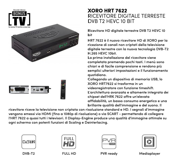 Xoro Decoder Dvb T2 Hevc 10 Bit Black HRT 7622 DVB-T2