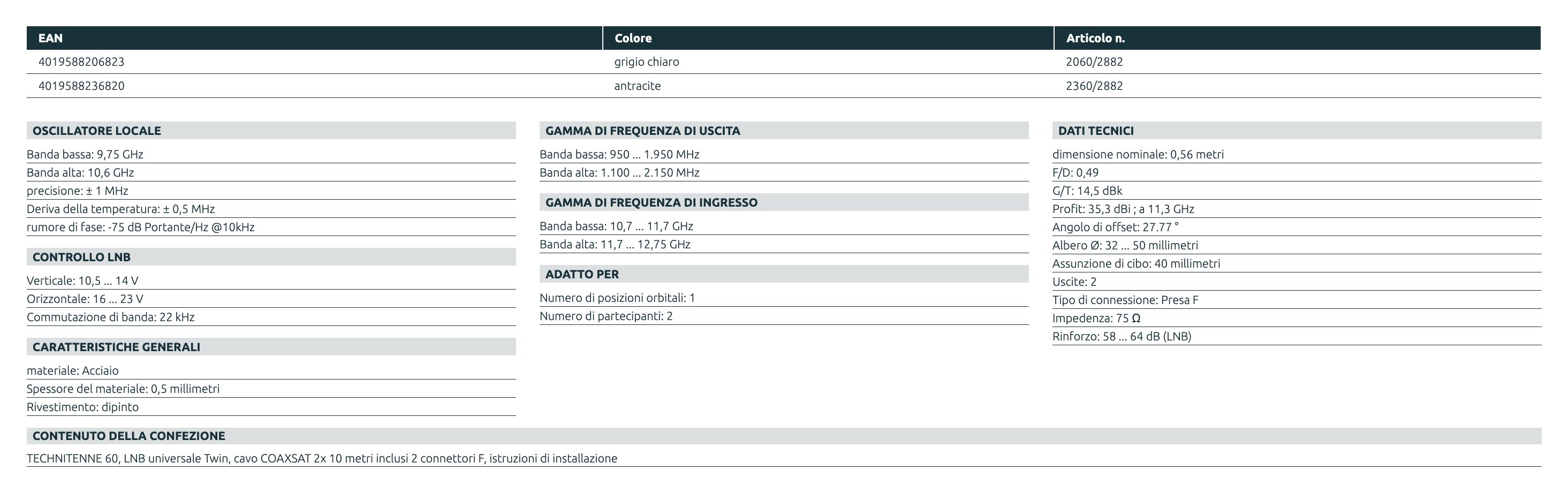 Technisat Kit parabola 60 Twin LNB con cavo 10m Grey 2060 2882