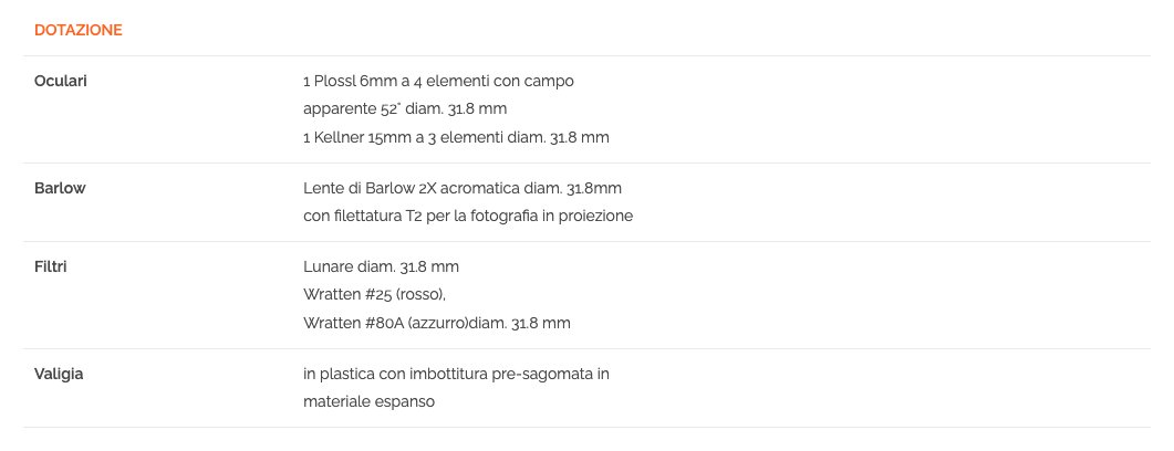 Questo kit accessori entry level è stato progettato per migliorare la funzionalità e il piacere di usare i telescopi per principianti. Gli accessori visuali forniti con questo kit possono essere usati per ogni tipo di osservazione sia astronomica che terrestre. Avrete tutto il necessario per osservare con maggiore dettaglio la Luna, i pianeti, le stelle doppie e gli oggetti più brillanti del cielo profondo (sotto cieli scuri e limpidi). Per ottenere un ingrandimento ancora maggiore, è possibile usare la lente di Barlow 2x fornita nel kit che permette di raddoppiare l’ingrandimento di ciascuno degli oculari. In pratica si hanno a disposizione un totale di 4 differenti ingrandimenti. I filtri colorati del kit permettono di esaltare i dettagli planetari: ad esempio il filtro azzurro evidenzia la Grande Macchia Rossa di Giove, e il filtro rosso scurisce il fondo cielo quando si vuole osservare Venere durante il giorno. Il filtro lunare permette di ridurre la luminosità della Luna e di osservare i crateri con un contrasto più accentuato. Il contenitore in plastica con imbottitura in materiale espanso consente di trasportare i vostri accessori senza timore di danneggiarli. Completa il kit un panno di microfibra che permette di pulire le ottiche senza graffiarle. Il kit può essere usato con i telescopi di tutte le marche che accettano oculari e filtri diametro 31.8 mm.