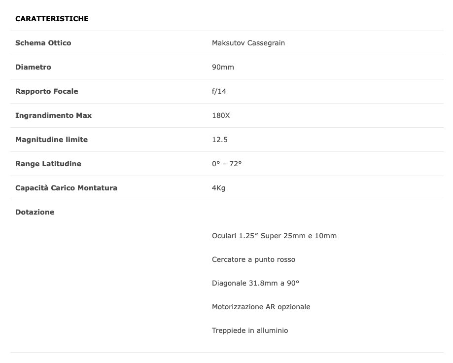 Completo di cercatore reddot a punto rosso, oculare 10mm (125x), oculare 25mm (62x), treppiede regolabile in altezza