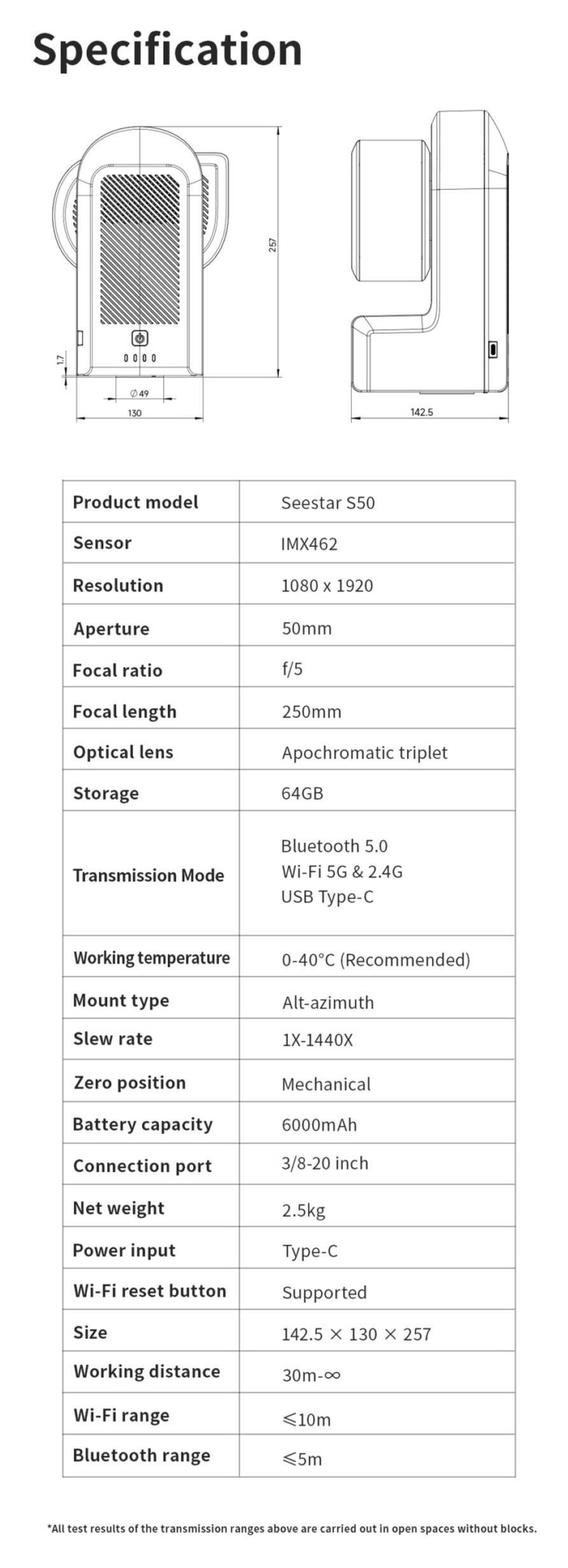Il Seestar S50 è la combinazione perfetta tra telescopio e macchina fotografica, che regala esperienze eccezionali per l'osservazione astronomica e paesaggistica. È il compagno ideale per esplorare le meraviglie dell'universo, sia all'interno che all'esterno. Connessione wireless tramite Bluetooth o Wi-Fi.