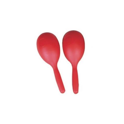 Maracas in plastica, forma ovale, colore rosso. Lunghezza cm 20, diametro cm 6,5.