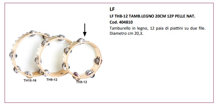 Tamburello in legno, 12 paia di piattini su due file. Diametro cm 20,3