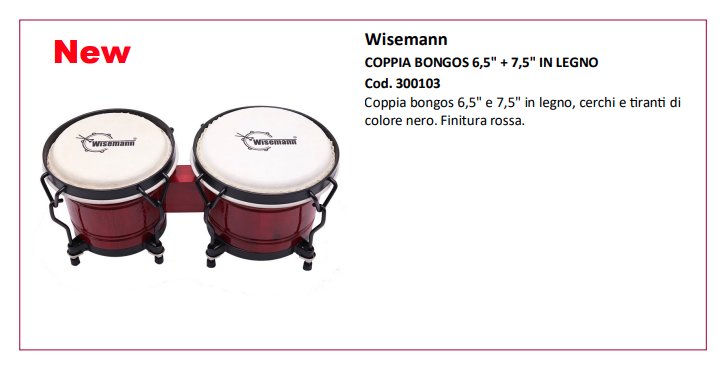 Coppia bongos 6,5" e 7,5" in legno, cerchi e tiranti di colore nero. Finitura rossa.