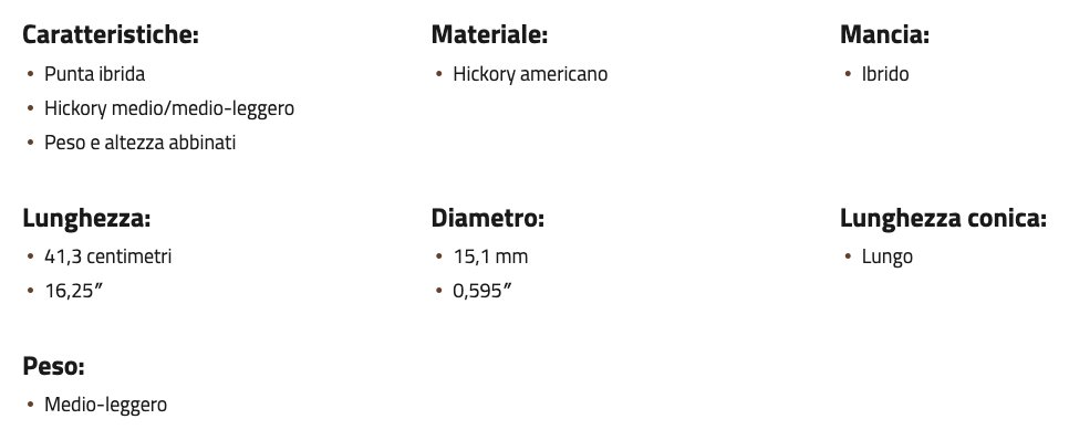 Progettato per batteristi che suonano in diverse band e in molteplici situazioni, con un'ampia gamma di generi e stili musicali. La punta unica ha una forma a ghianda, che viene poi accorciata fino a raggiungere le dimensioni classiche di un barile per un design ibrido che produce un'articolazione scura e fluida sui piatti. La lunghezza aggiuntiva e la conicità accentuata conferiscono a questa bacchetta una risposta rapida con un rimbalzo maggiore per chop veloci e groove profondi.