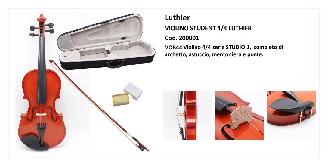 Violino 4/4 serie STUDIO 1, completo di archetto, astuccio, mentoniera e ponte.