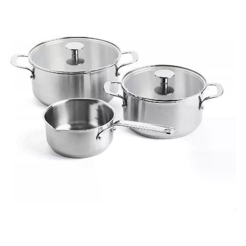 Composizione: pentola 3,1 lt con coperchio, pentola 4,8 lt con coperchio e pentola bordo curvo 1,5 lt