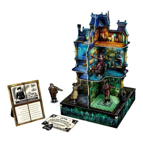 Vivi un'avventura nel paranormale! Immedesimati in uno spirito e aiuta i detektive a far luce su un caso irrisolto rispondendo ai quesiti attraverso la tavola Ouija. La confezione comprende Casa 3D (3 pavimenti, 4 pareti, connettori), 1 spinner, 4 Personaggi con base, 200 Carte Obitorio, 20 Carte seduta spiritica, Cavalletto, Tavola Ouija, Puntatore, Manuale istruzioni.