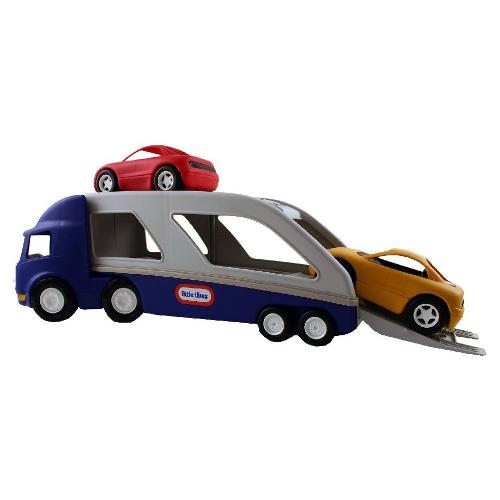 Questa bisarca contiene due macchinine sportive per ore e ore di divertimento.