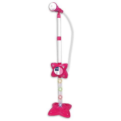 Microfono da palcoscenico - asta con effetti luminosi regolabile in altezza - 10 brani preregistrati - regolazione del volume - effetto applausi - connessione ad un lettore di mp3, (smartphone, tablet, cd player...), cavetto incluso - effetti luminosi