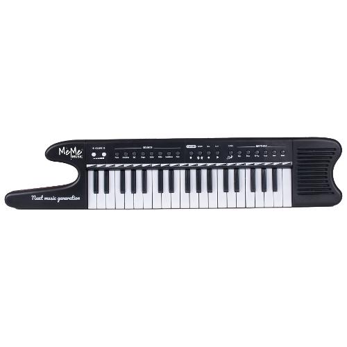 Keytar elettronica a 37 tasti , 8 suoni , 6 ritmi , 10 brani , registrazione e riascolto , OKON (Funzione di apprendimento) , Regolazione del volume , Presa per cavetto USB-DC (fornito) o per adattatore da rete (non fornito) , Presa per microfono (non fornito) , Presa cuffia (non fornita) , Presa per sorgente musicale esterna (lettore MP3, smartphone, ecc.) , Alimentazione: con adattatore da rete (non fornito) o con cavetto USB-DC (fornito) da collegare ad una power bank, PC, cecc. (non forniti) o con 4 batterie da 1,5V tipo R6/AA (non fornite) , Tracolla