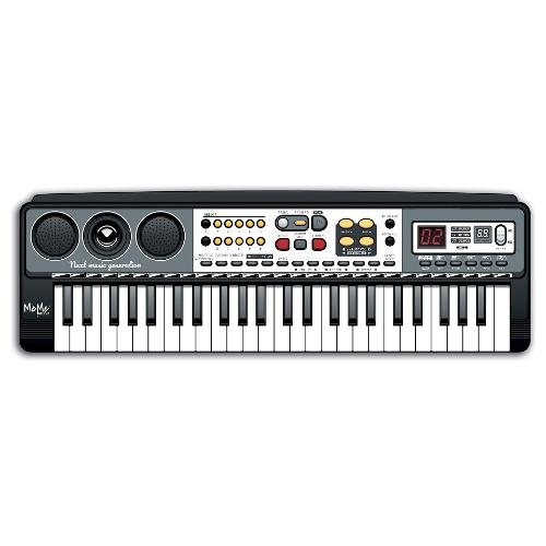 Tastiera digitale a 49 tasti, connessione wireless. 100 suoni, 100 ritmi con facile programma di accordi, 10 canzoni, sequencer per la registrazione e la riproduzione. Effetti: vibrato, sustain. Volume generale, Start/Stop/Tempo, Fill in, Sync. 5 pad per suonare la batteria. Controllo del volume e dell'avanzamento delle tracce. Presa per adattatore di rete. Presa microfono a condensatore (non fornito), leggio. 2 Digit display. Cavo USB per power bank (incluso). Batterie, 4 R6 AA, non incluse.