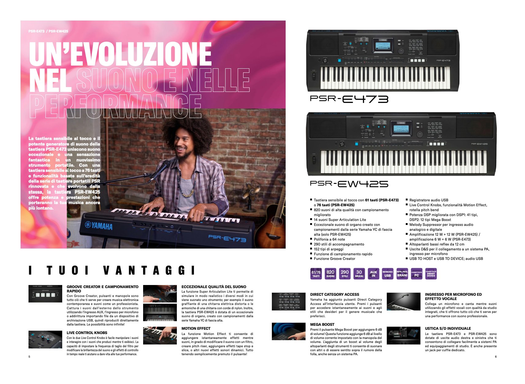 La tastiera sensibile al tocco e il potente motore sonoro della PSR-E473 uniscono un suono superbo e un feel eccezionale in un nuovissimo strumento portatile.